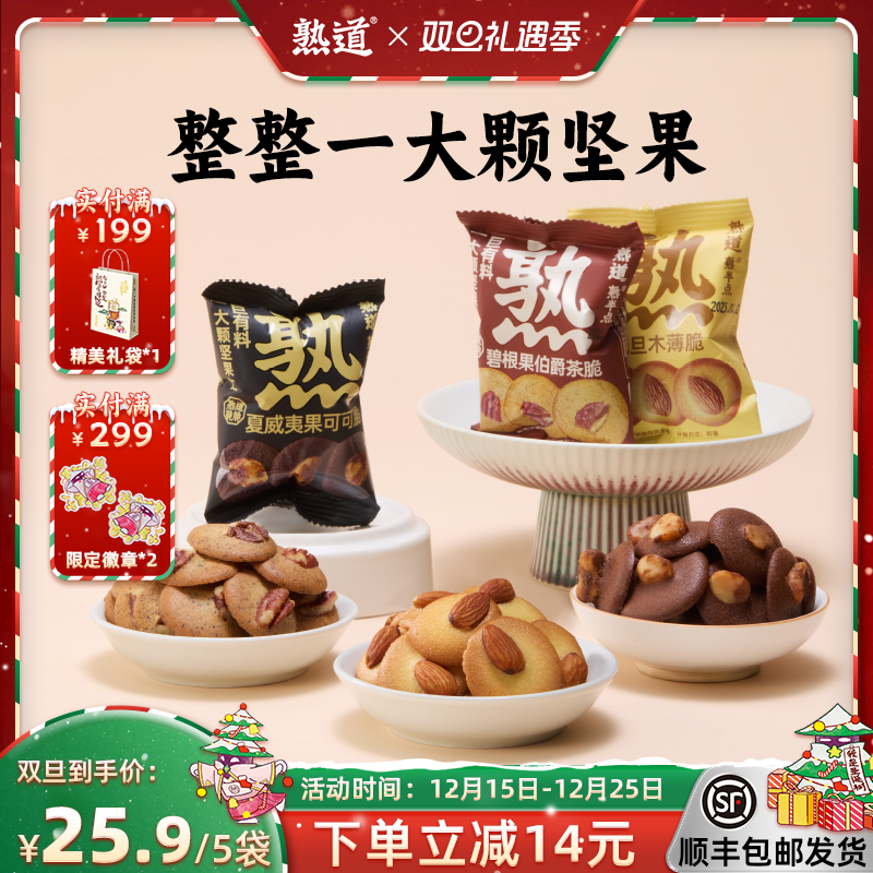 熟道坚果脆尝鲜装巴旦木薄脆夏威夷果可可脆片碧根果伯爵茶脆5袋