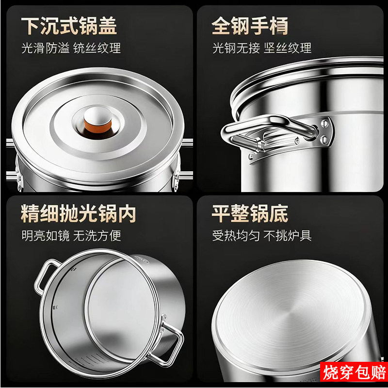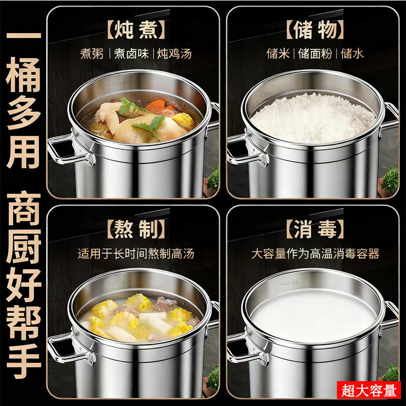 推荐理由:304商用电磁炉专用汤桶不锈钢汤锅大容量圆桶加厚特卤肉家用燃气