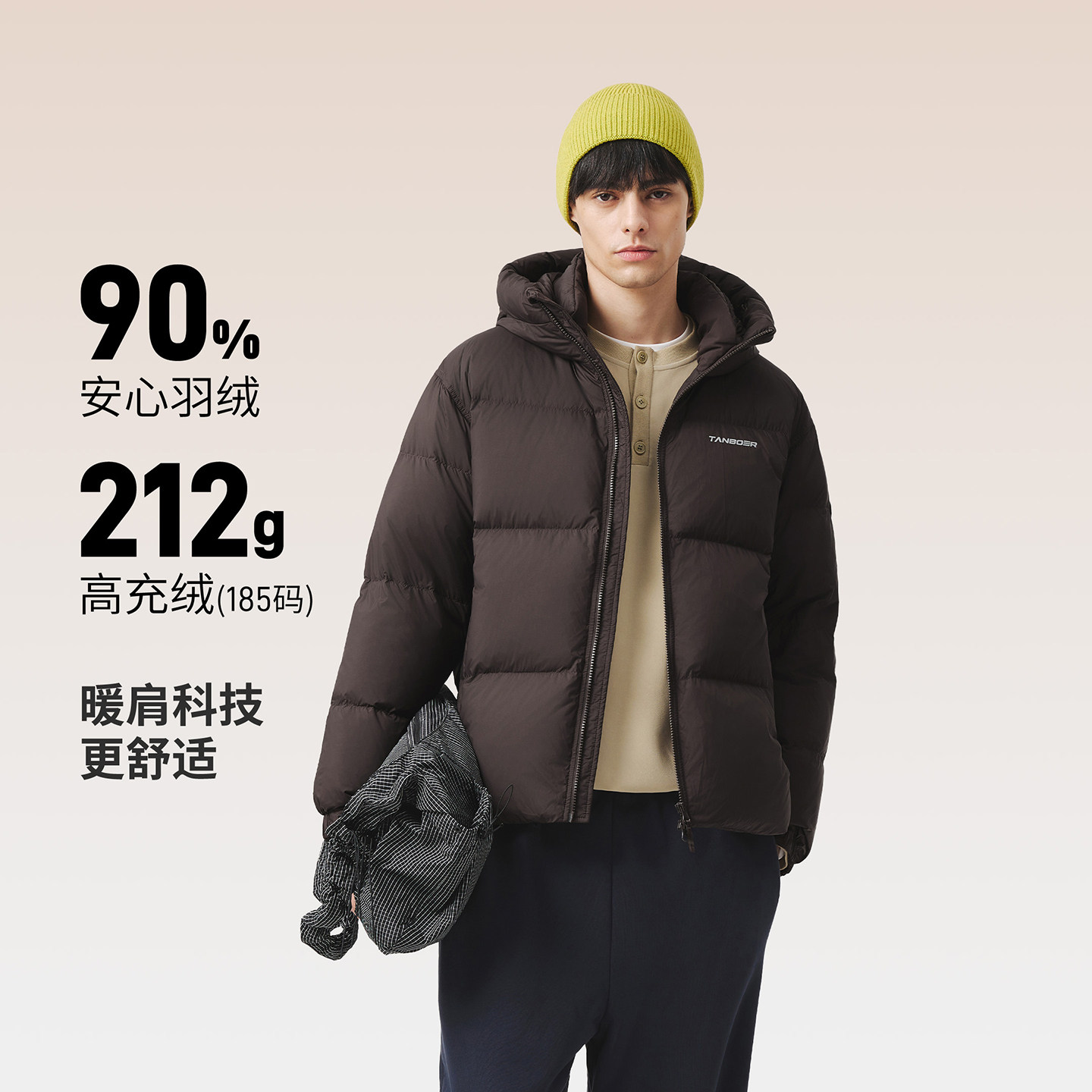 坦博尔2025秋冬新款羽绒服男款泡芙加厚保暖舒适短款连帽潮流外套