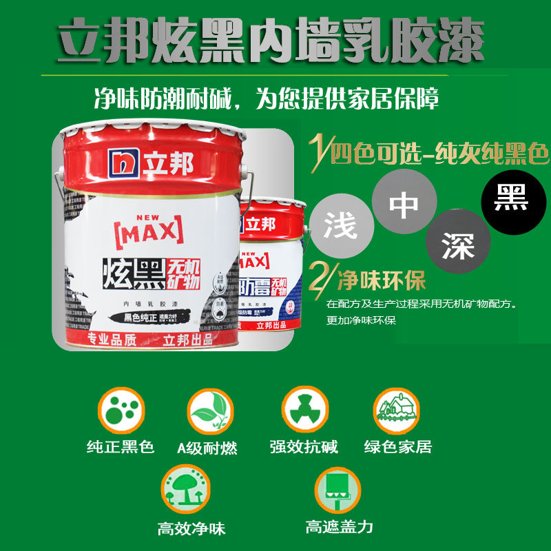 推荐理由:立邦炫黑色灰色内墙乳胶漆天花吊顶涂料浅灰深灰色工业风格刷墙漆