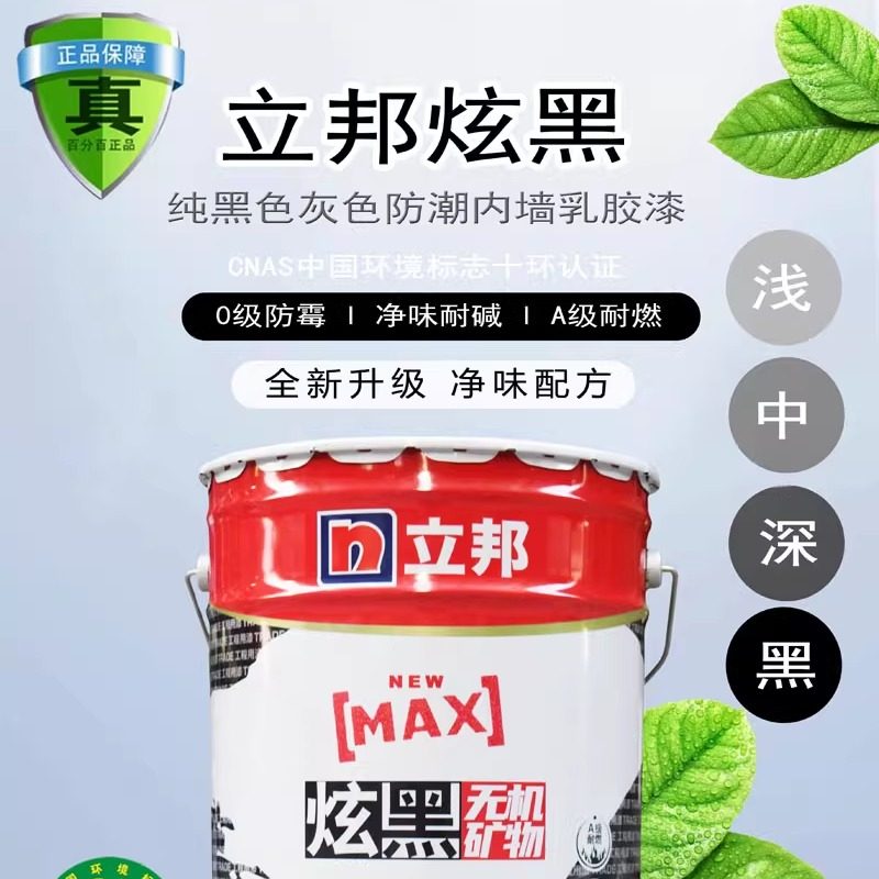 立邦炫黑色灰色内墙乳胶漆天花吊顶涂料浅灰深灰色工业风格刷墙漆