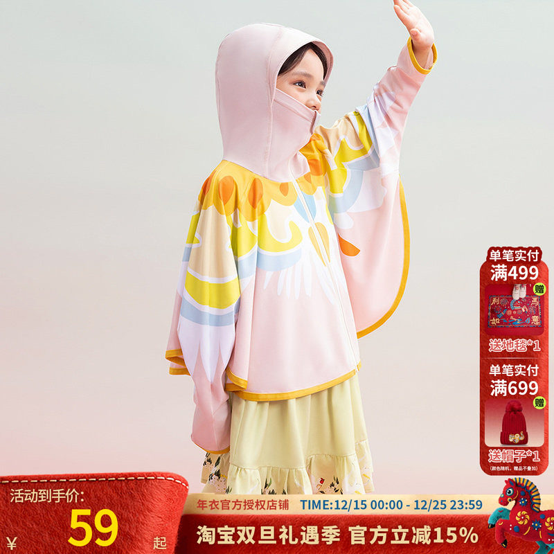 年衣童装儿童防晒衣男女童连帽户外皮肤衣宝宝夏装防紫外线外套