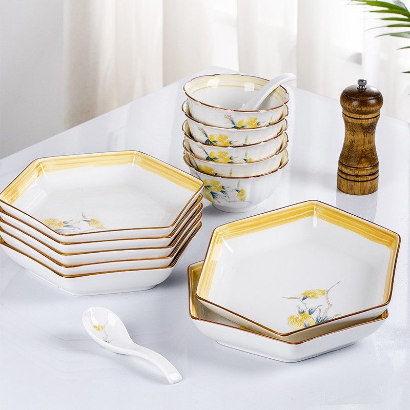 速发【散件】六边形菜盘拼盘餐具碗碟组合 标准语德秸杆还田户外