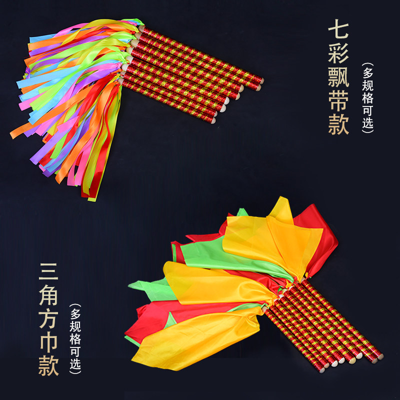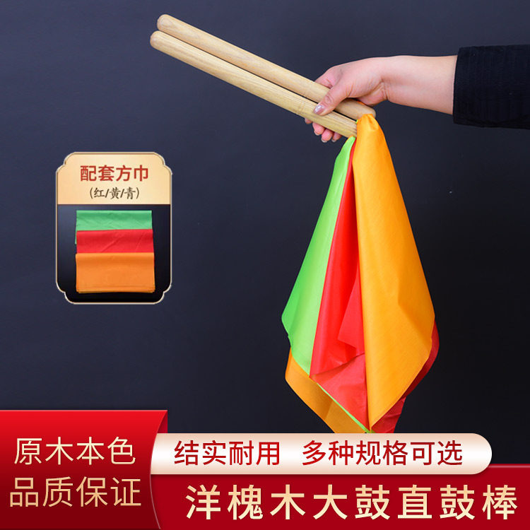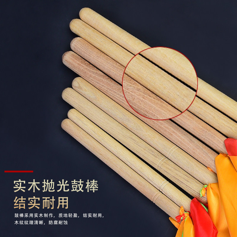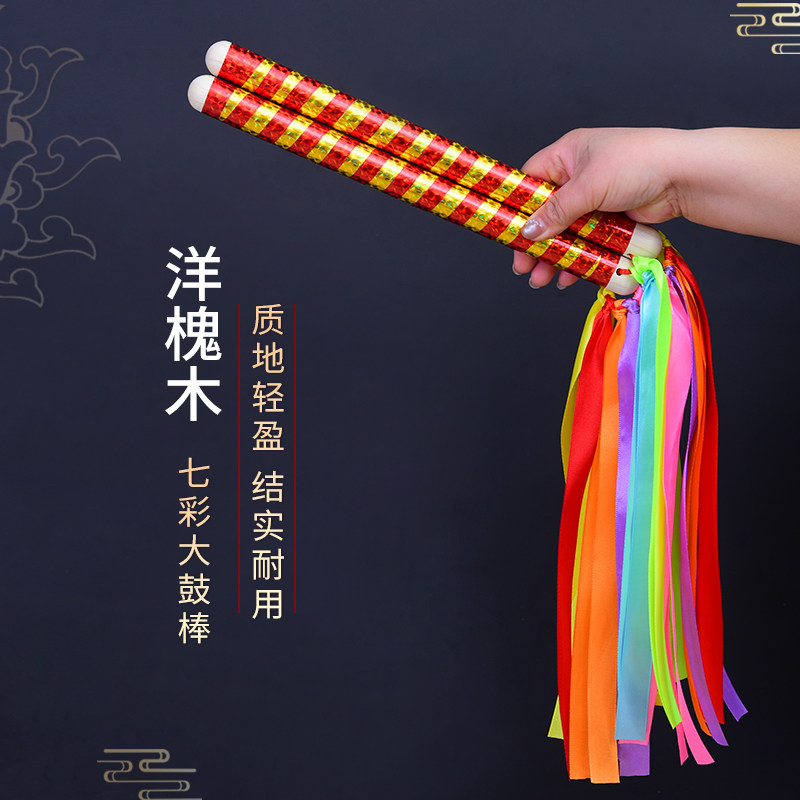 七彩鼓棒大鼓锤实木打鼓棒榉木儿童排鼓洋槐木鼓槌红绸多彩色鼓槌