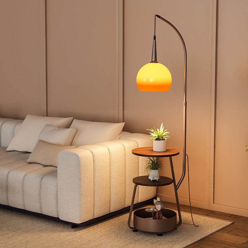 新款置物功能中古风落地灯复古柚子灯造型客厅沙发旁氛围感钓鱼灯