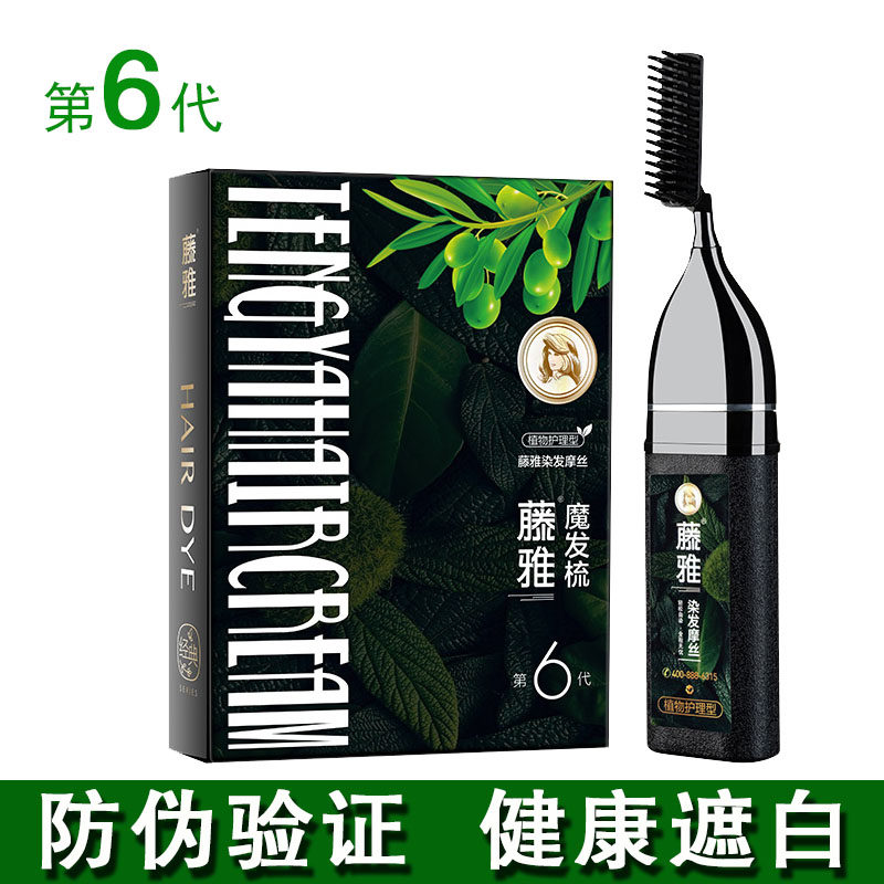 藤雅染发膏第六代一梳黑正品纯植物黑发第五代魔发梳染发剂泡泡