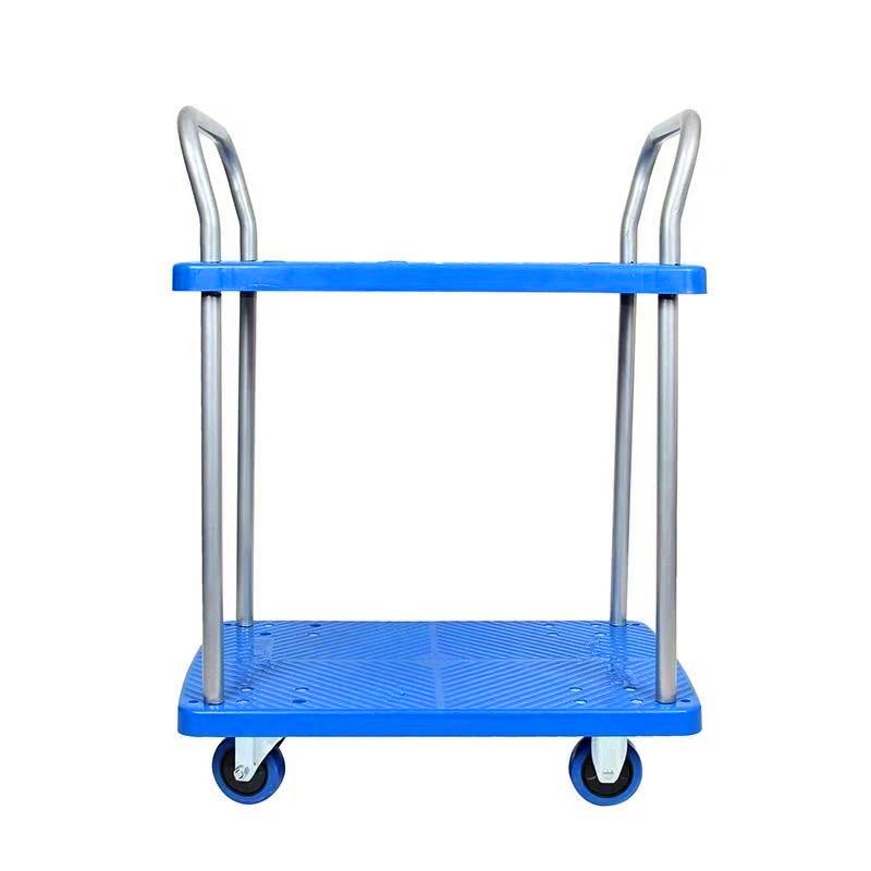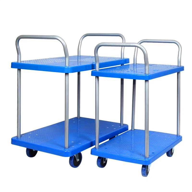 推荐理由:双层三层平板车带护栏推车两层工具车仪器车拖货车静音搬运小推车