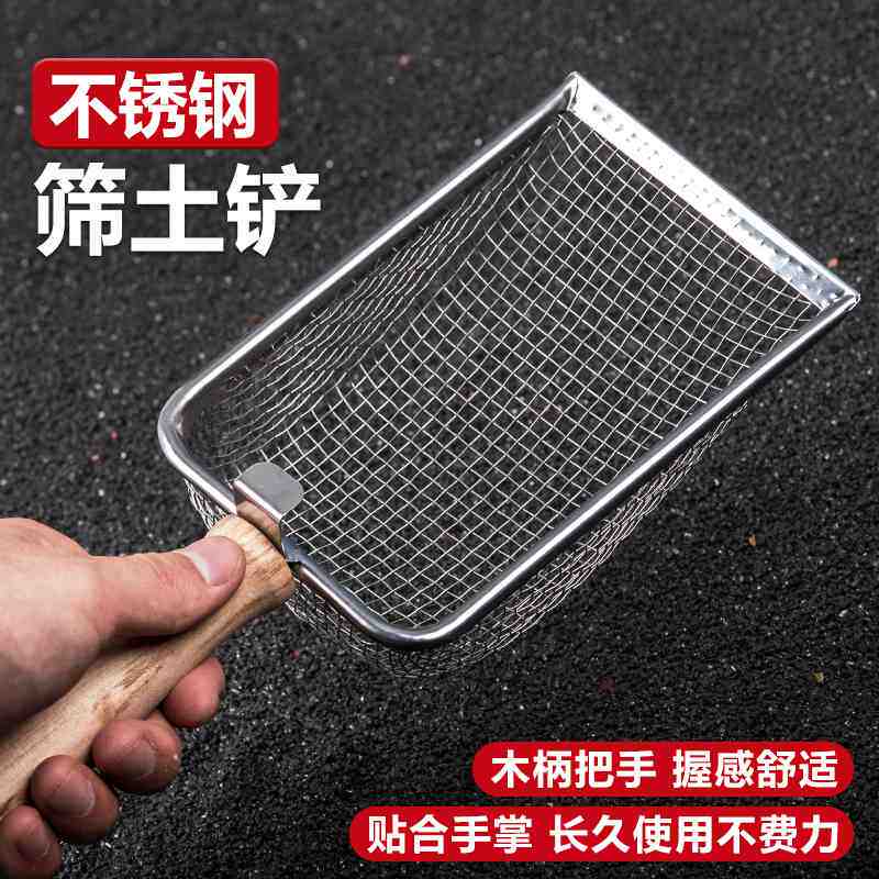 园艺不锈钢筛土铲子可悬挂式种植工具筛子养多肉工具颗粒土筛种花