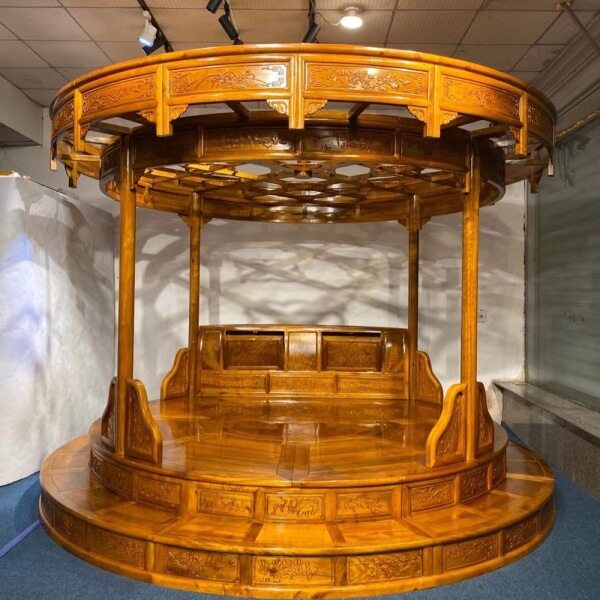 金丝楠木双月洞梅花架子床踏步床圆床小叶桢楠实木原木大床婚床铺
