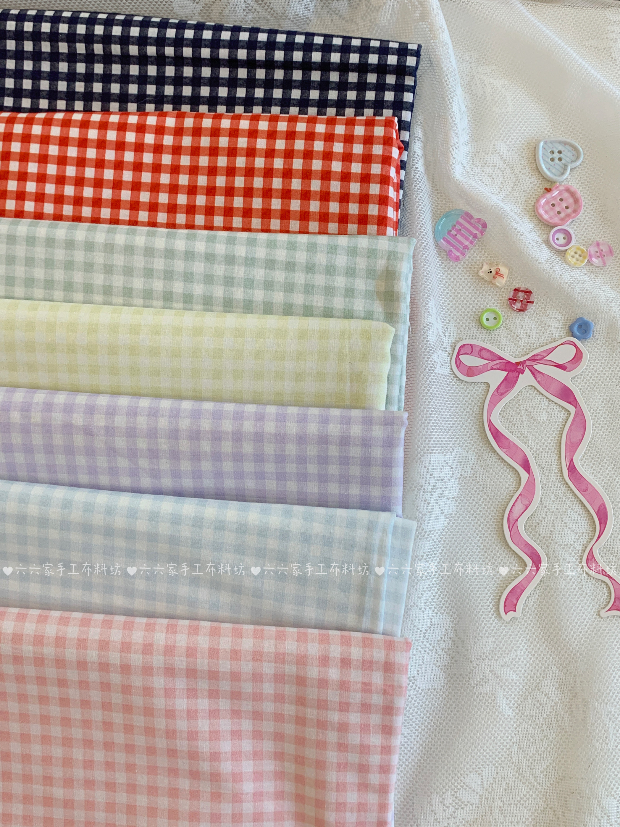 六六家全棉40支印花布料格子百搭面料家居服发饰童装布diy连衣裙