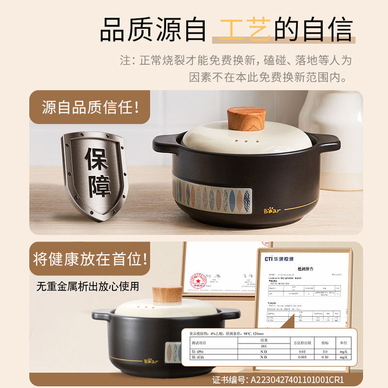 小熊砂锅炖锅家用燃气耐高温干烧不裂煤气灶沙锅煲仔饭陶瓷锅汤锅