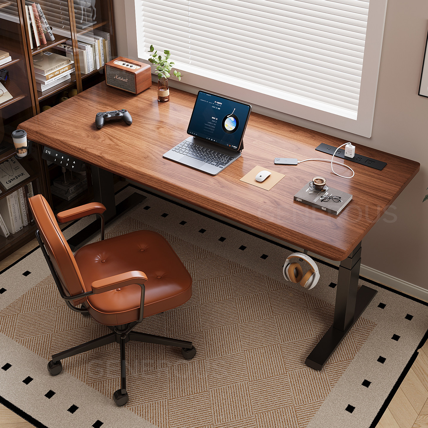实木电动升降桌智能电脑桌电竞桌卧室家用学习书桌办公桌子工作台