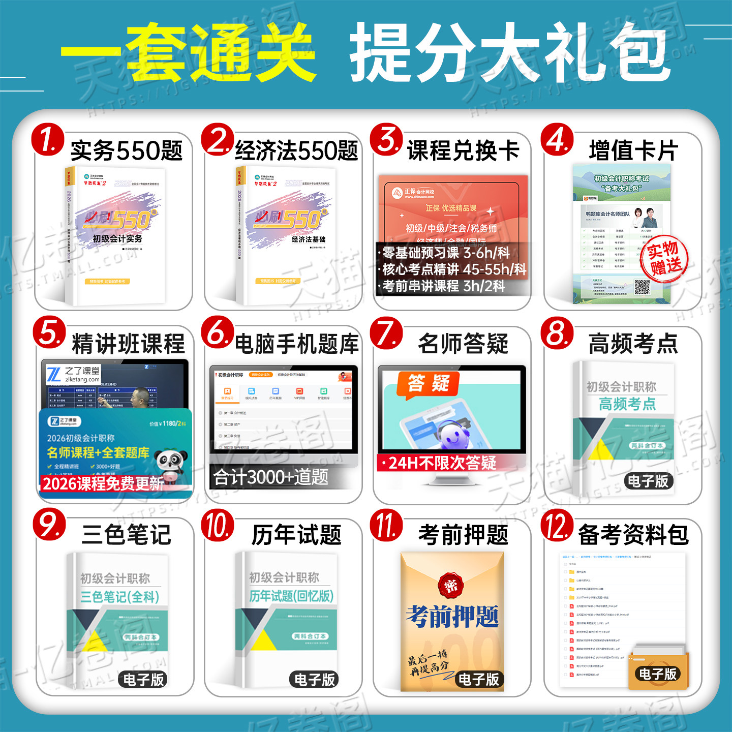 初级会计2026年必刷550题实务和经济法基础考试刷题习题26会计师职称初会证教材必刷题2025历年真题库试卷官方习题章节练习题正保