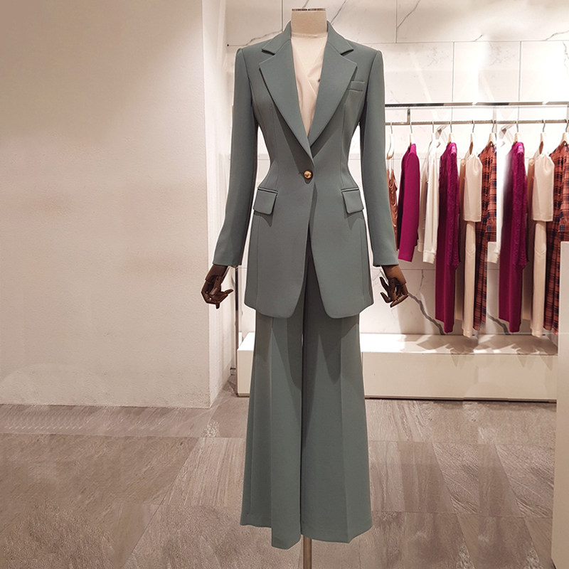 2025秋季新时尚潮气质通勤OL收腰长裤修身一粒扣西装外套女套装