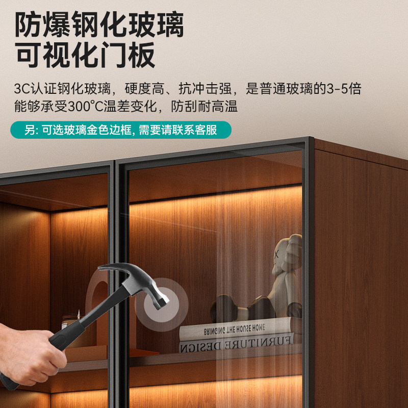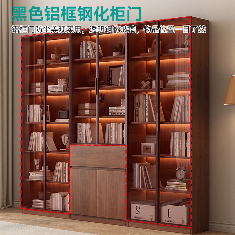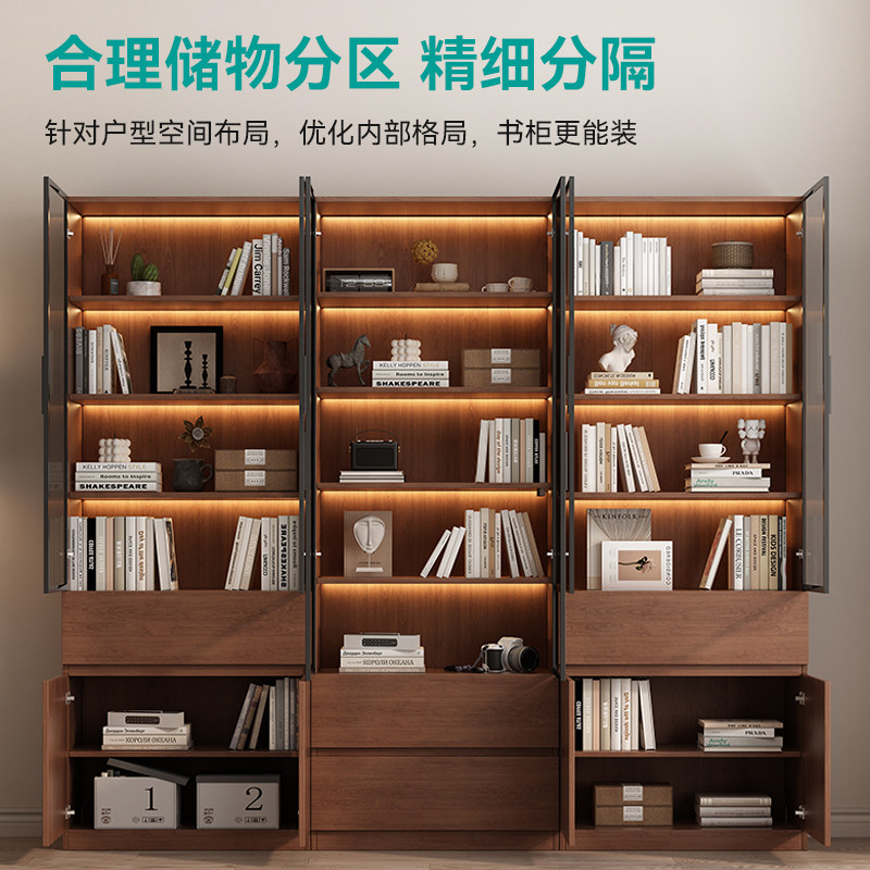 推荐理由:胡桃带玻璃门客厅书柜一体整墙组合书橱展示柜柜子组合柜储物柜