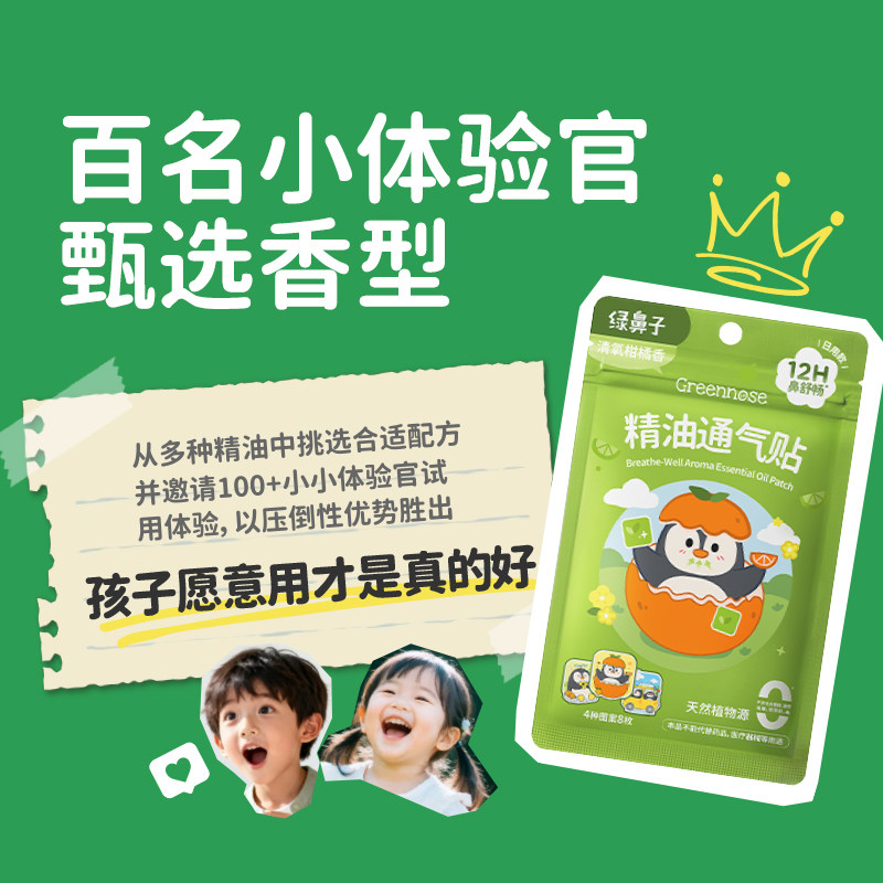 绿鼻子儿童通鼻贴宝宝植物精油缓解婴儿鼻塞小儿鼻通贴成人鼻舒贴