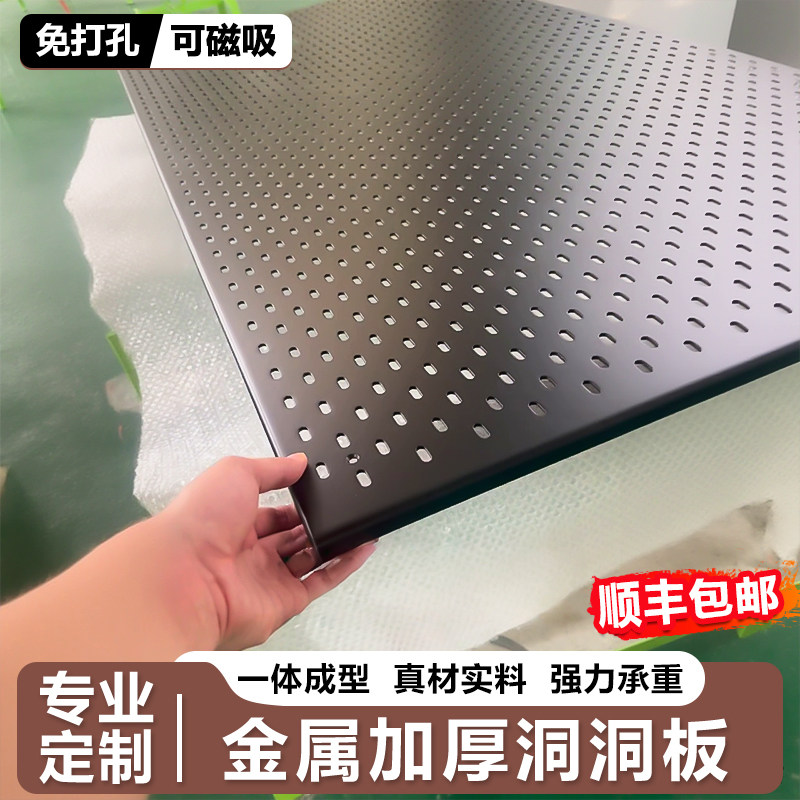 金属加厚黑色铝合金洞洞板定制不锈钢免打孔冲孔板置物架收纳磁吸