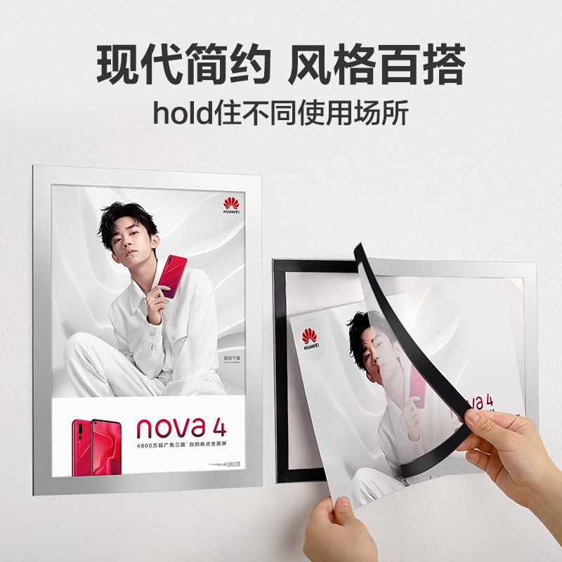 a3磁吸海报框a4展示牌磁性电梯广告框挂墙可更换内容画框装裱简约相框免打孔相片展示墙自粘宣传板墙面墙贴
