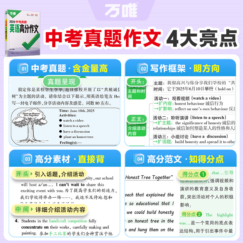 推荐理由:【2026新版】万唯中考英语满分作文初中新概念阅读示范大全七八九年级上下册范文精选学霸作文书素材模板资料全套写作初一初二初三