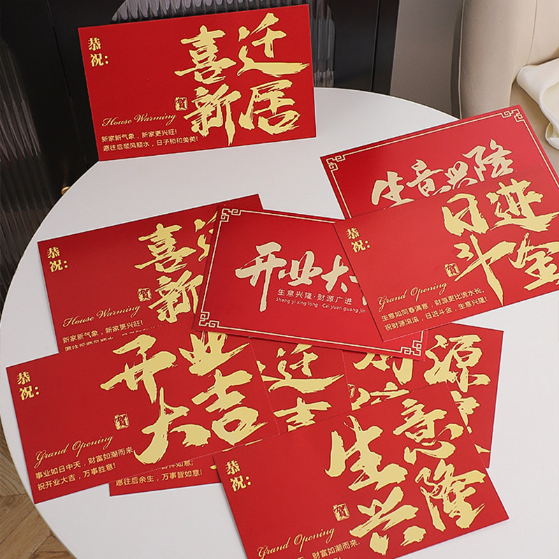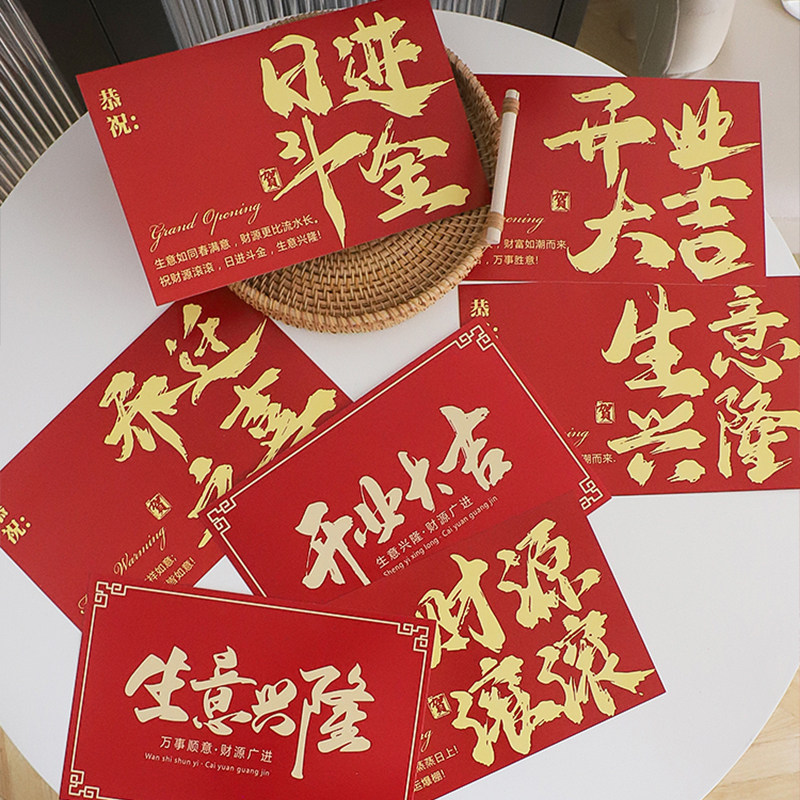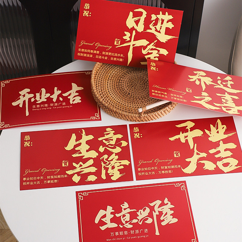 开业大吉花篮卡片贺卡烫金书法鲜花花束包装花艺花店开张祝福花卡