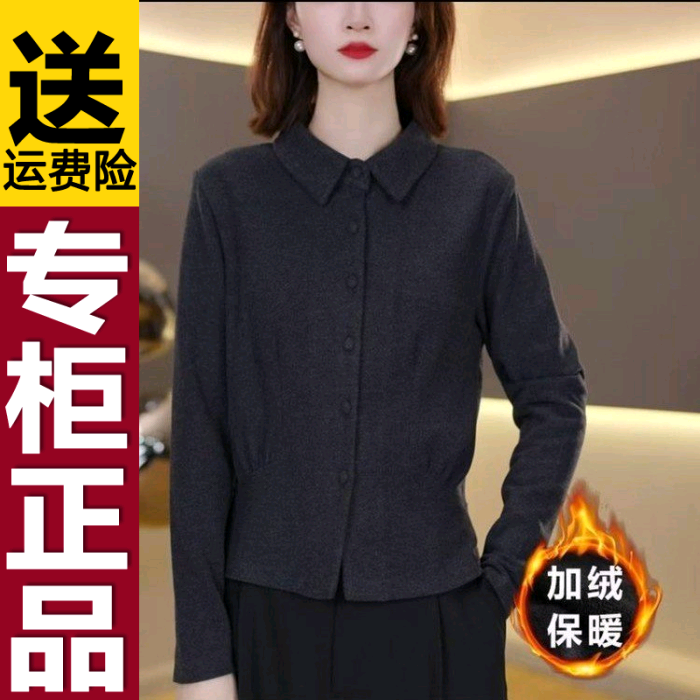 正品翻领打底衬衫时尚气质简约百搭加绒保暖衬衣冬季新款打底衫女