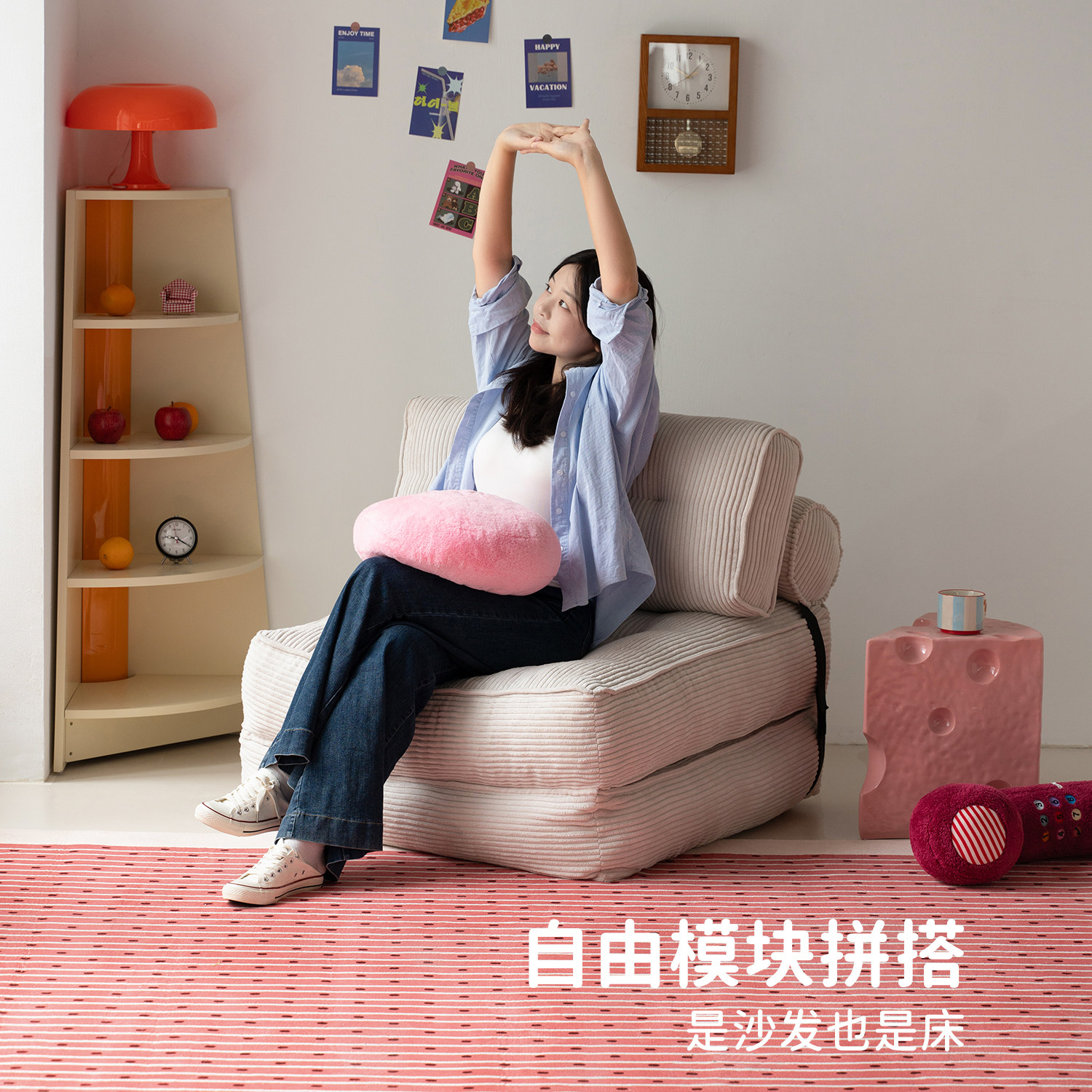 ROOOOM儿童沙发床可折叠小户型客厅卧室单人沙发床可折叠懒人沙发