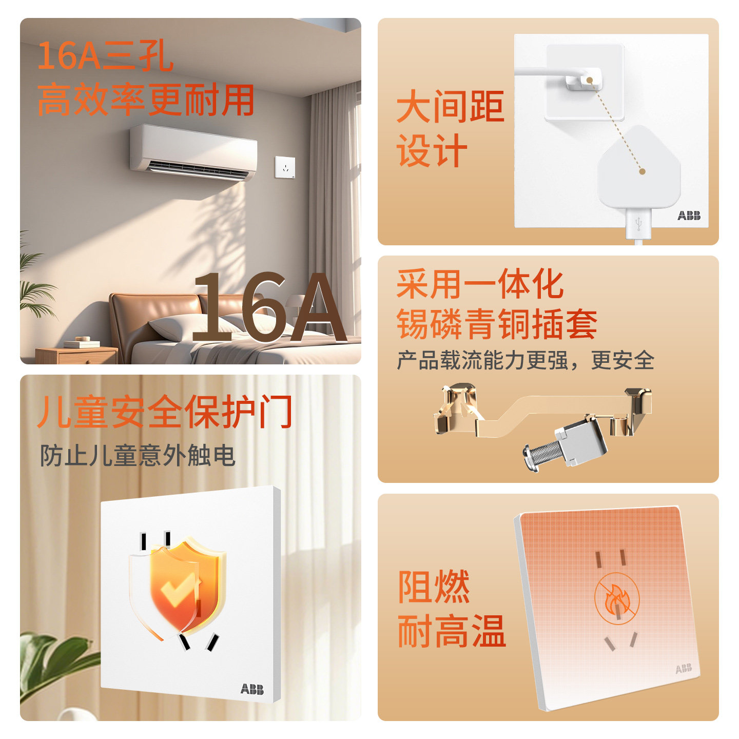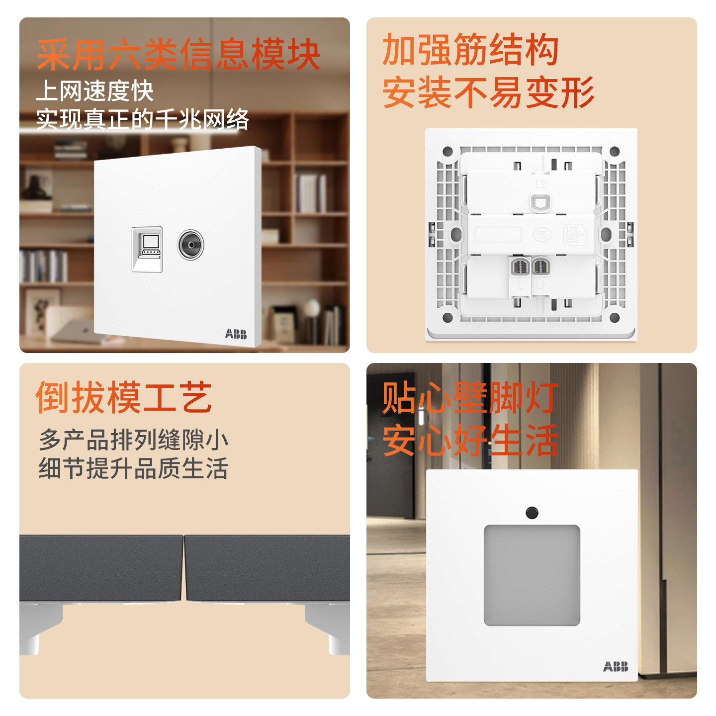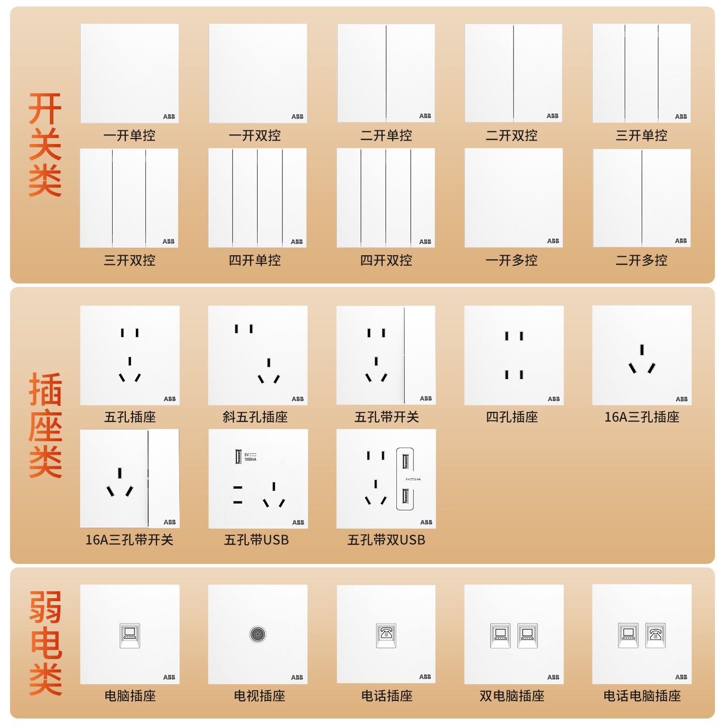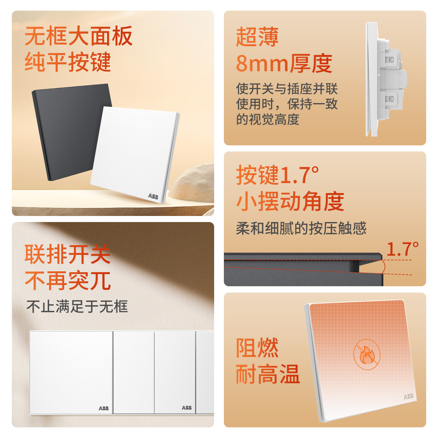 推荐理由:ABB盈致开关插座面板墙壁超薄暗装家用无框单双控五孔三孔16a插座