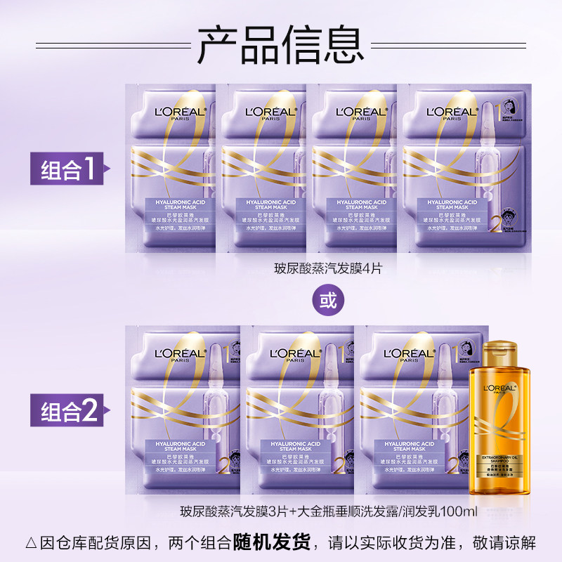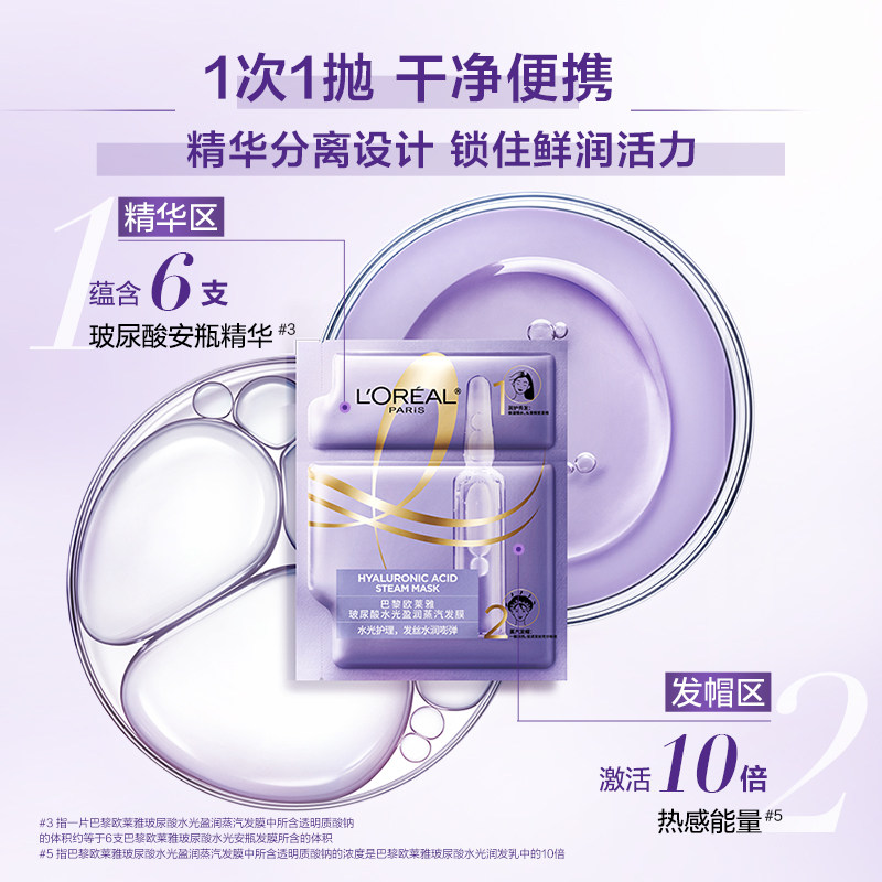 欧莱雅玻尿酸蒸汽发膜帽女加热补水保湿柔顺顺滑护发改善毛躁正品