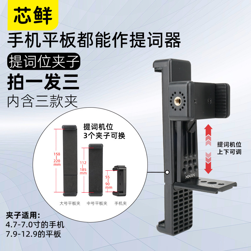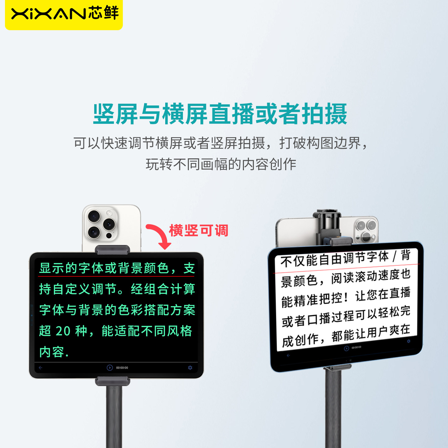 芯鲜PH60D5平板电脑大屏幕提词器拍摄支架玻璃轻便带双夹子口播落地三脚架手机和平板口播专用题词器台词直播