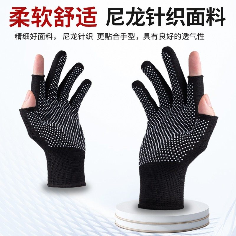手套劳保工作耐磨防滑露二半指钓鱼骑行防晒外卖快递干活打包分拣