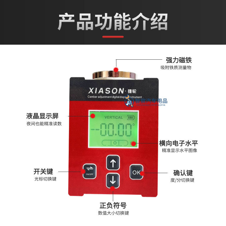 推荐理由:四轮定位专用外倾角电子水平仪数显角度仪60分度和百分度同步显示