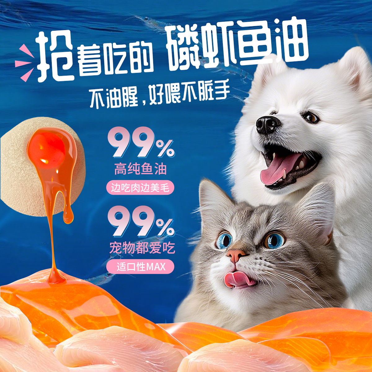 推荐理由:磷虾鱼油防掉毛猫咪专用宠物猫狗狗犬美毛卵磷脂冻干零食营养补充