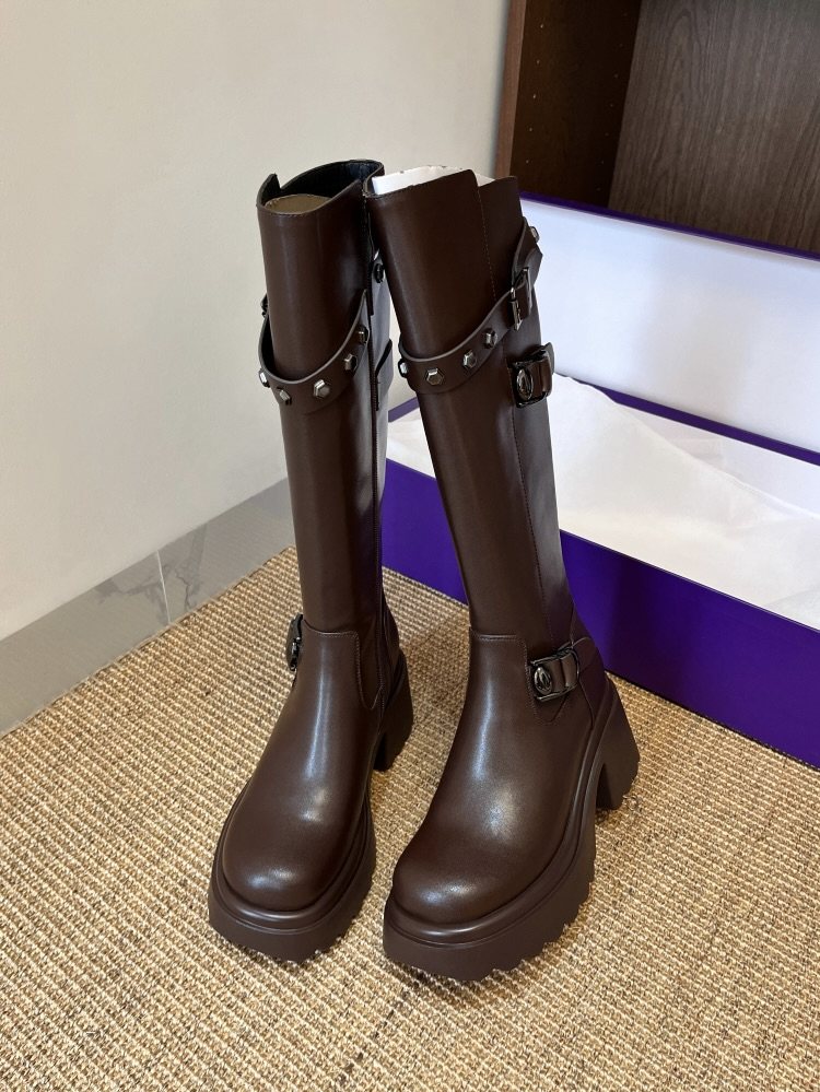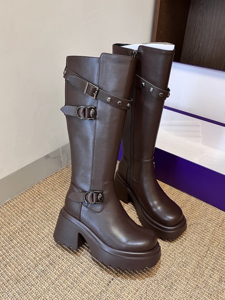推荐理由:拖沓刘天王/小粗腿巨显瘦厚底粗高跟铆钉骑士靴/全牛皮/大小筒围