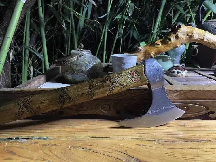 推荐理由:维京战斧纯手工雕刻陨石战斧印第安户外求生斧之权利之斧孤品