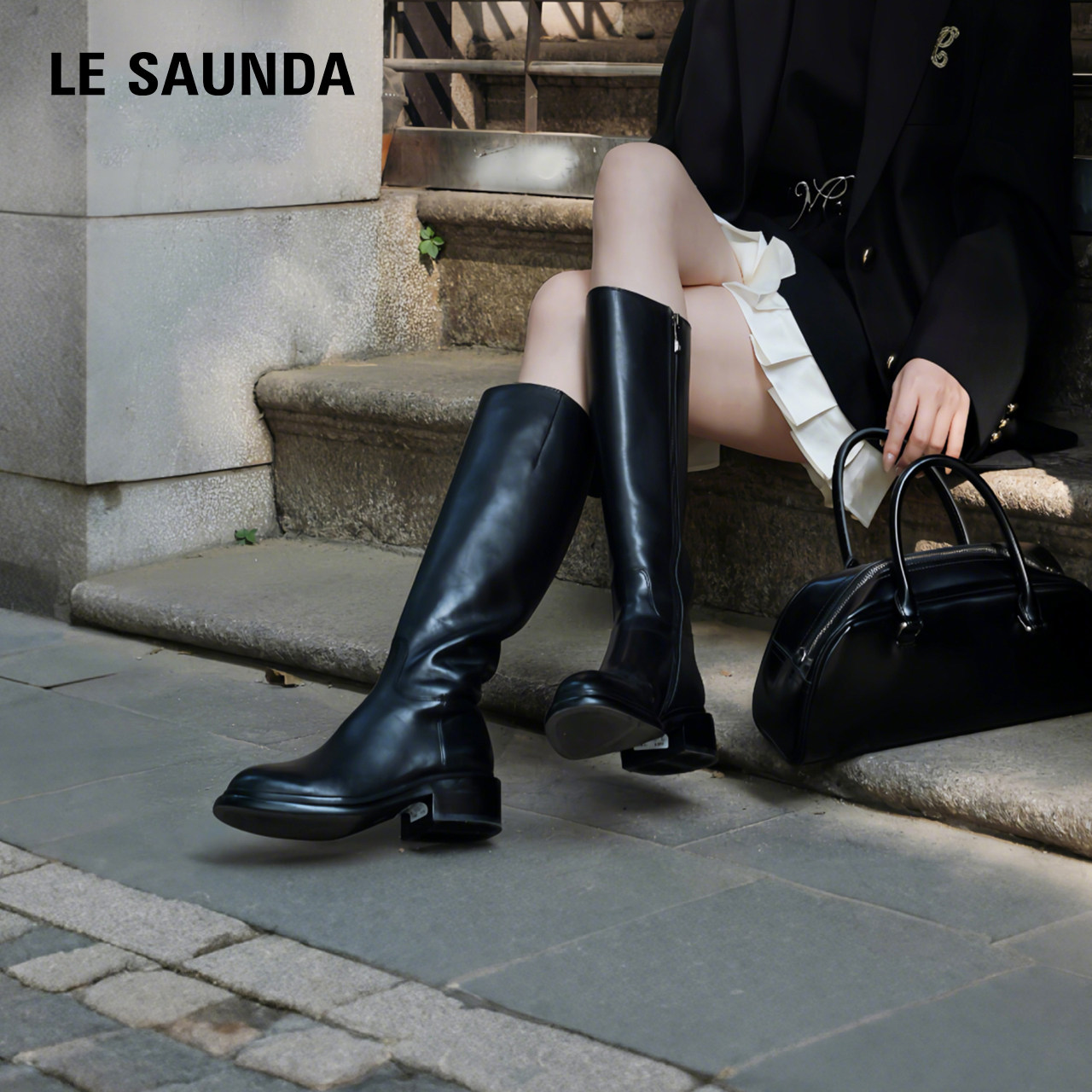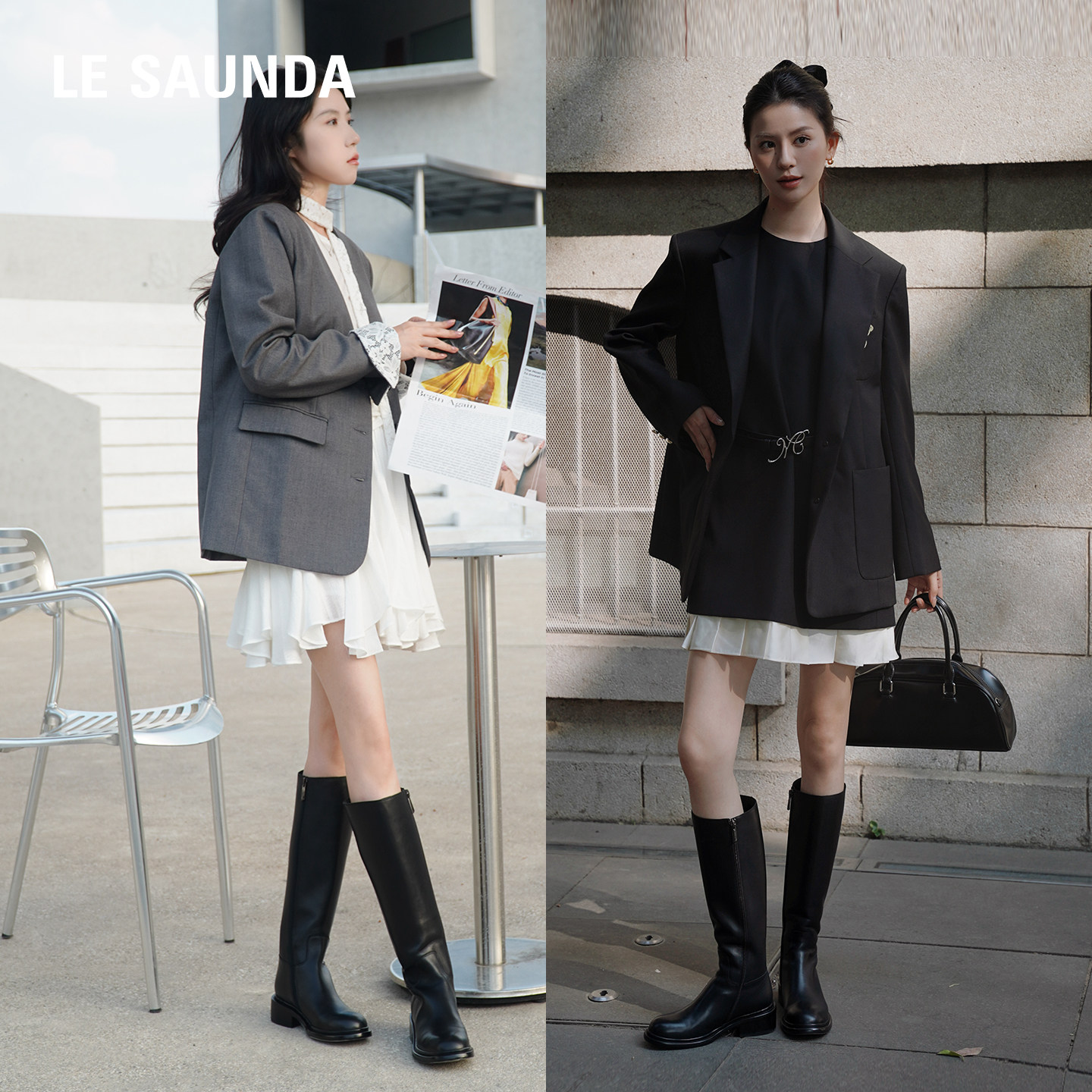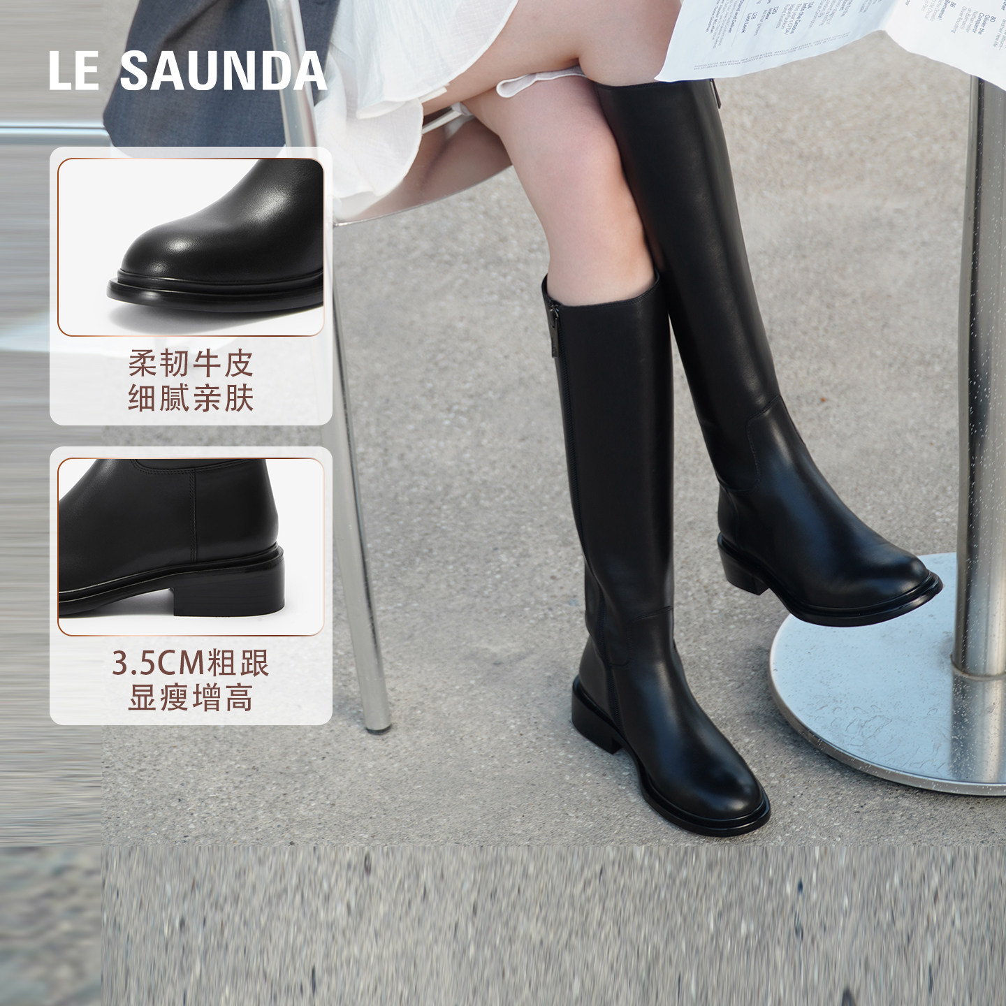 莱尔斯丹骑士乐章2025秋冬新款英伦真皮拉链骑士长靴子女鞋44104