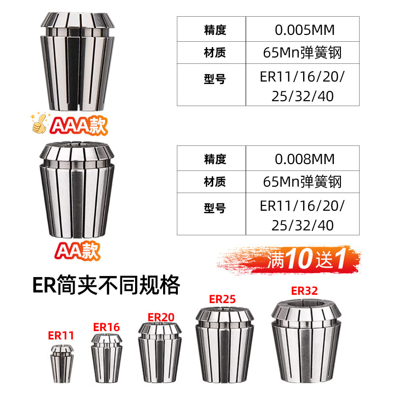 推荐理由:高精度弹性夹头ER20 弹簧数控雕刻机刀柄筒夹er32 8 11 16 25 40