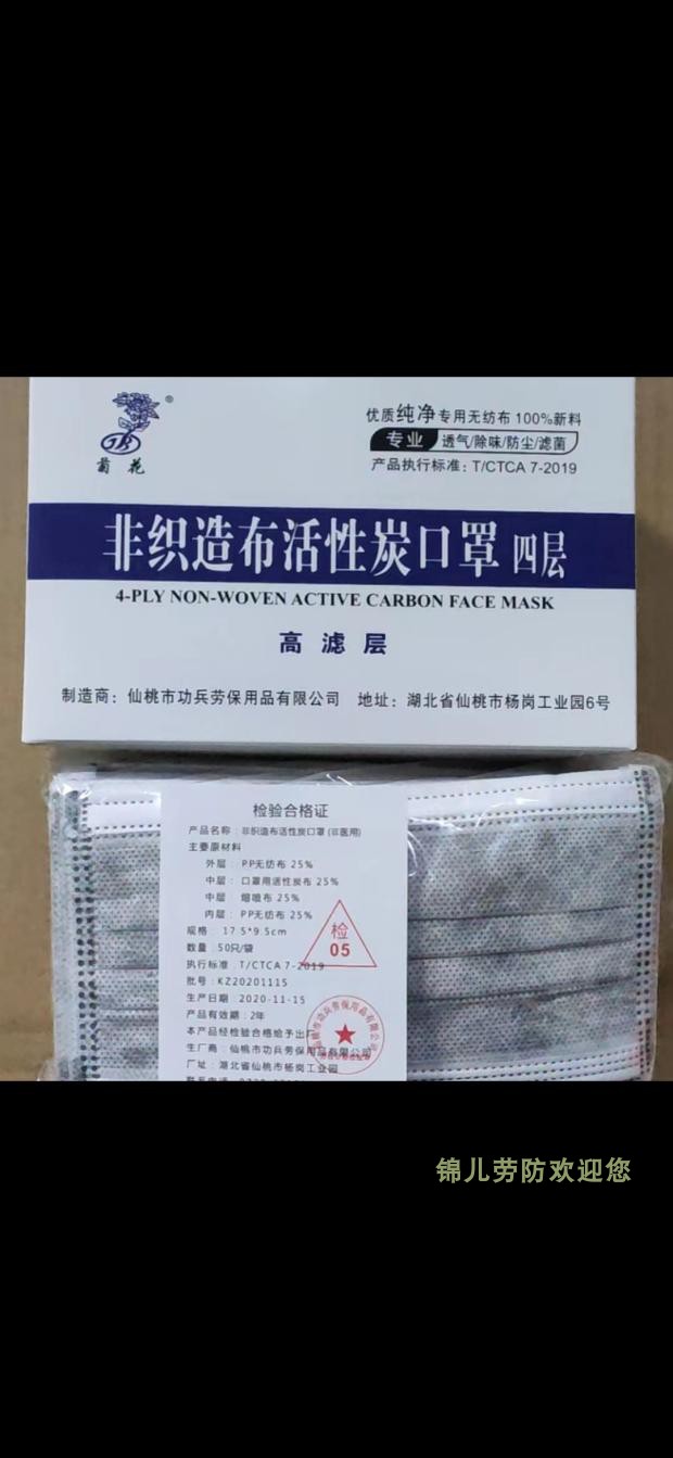 菊花牌一次性活性炭口罩四层 透气 防尘 除味 滤菌(50只)