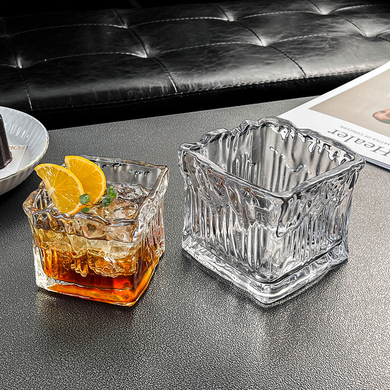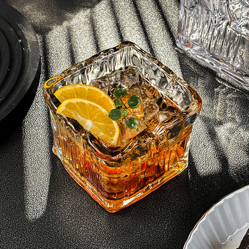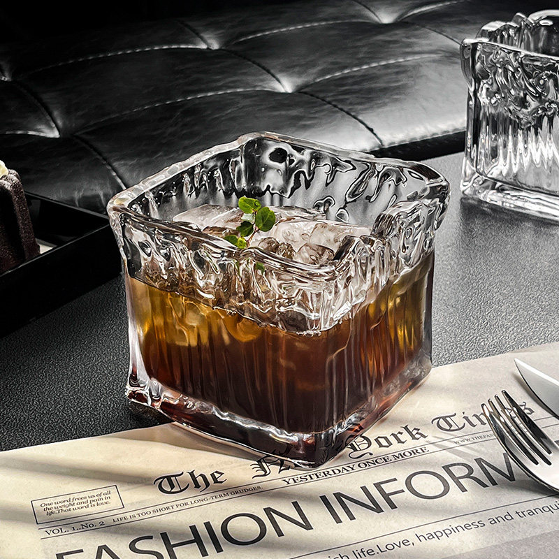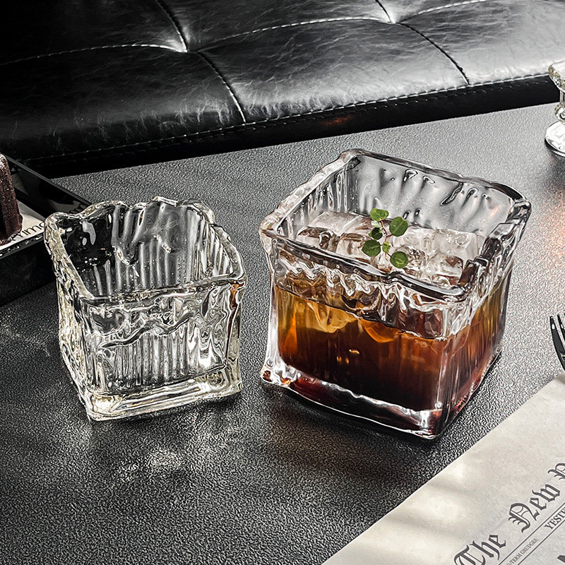 小众设计ins复古方形玻璃拿铁咖啡杯冰球威士忌杯早餐燕窝麦片碗