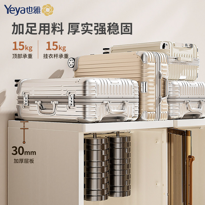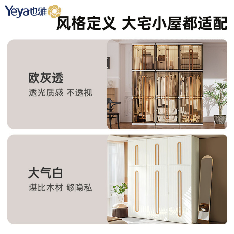 也雅塑料简易衣柜家用卧室可移动大人儿童挂衣橱靠墙一体收纳柜子