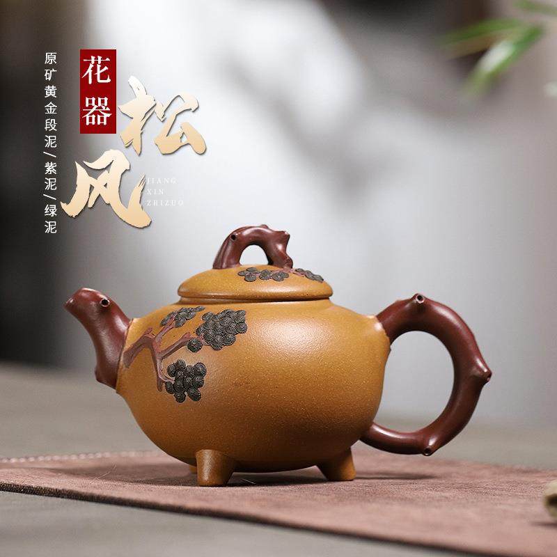 正宗宜兴名家全手工原矿黄金段泥紫砂壶 松风茶壶精品茶具