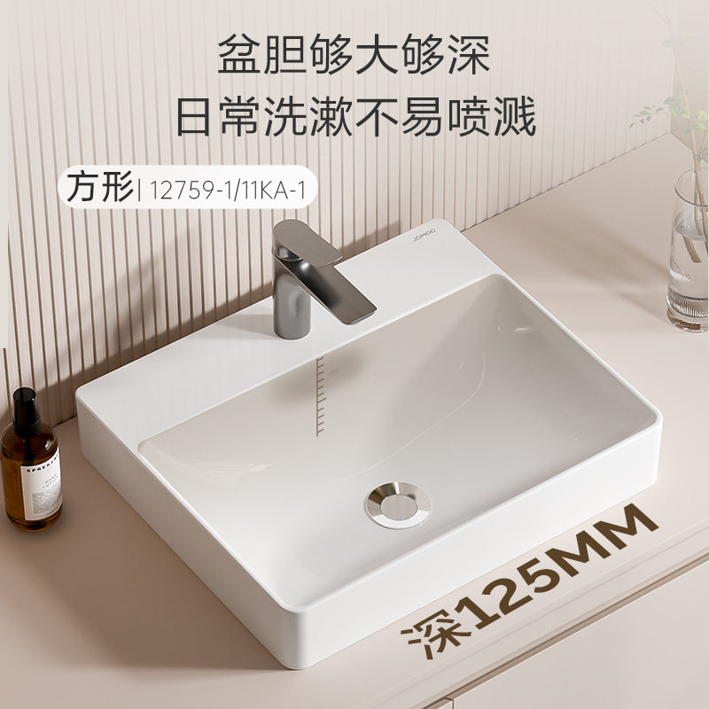 九牧台上盆洗脸洗手洗漱盆加深陶瓷阳台方形卫生间防溅水面盆家用
