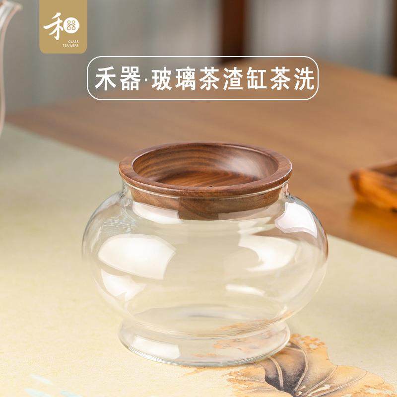 禾器新品清婉建水高硼硅玻璃小茶洗家用茶杯茶渣缸纯手工茶具配件