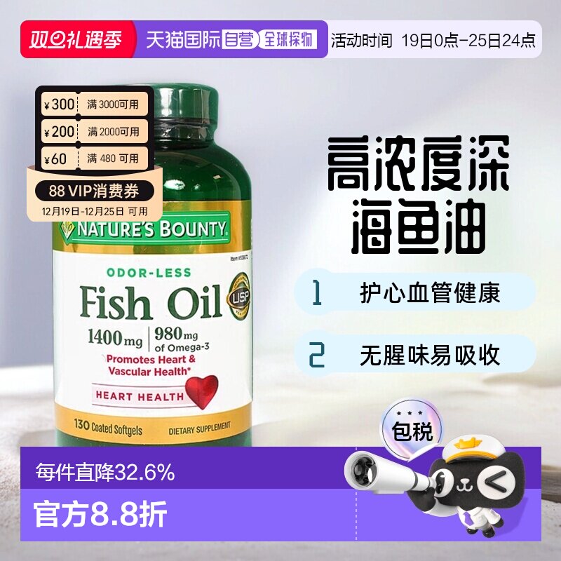美国直邮Nature's Bounty自然之宝深海鱼油高浓度营养丰富1400mg