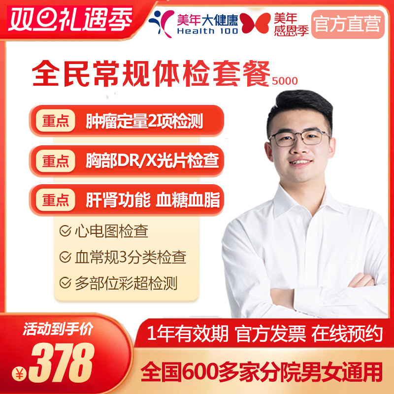 美年大健康 全民常规体检套餐彩超多项 多城市男女通用在线预约