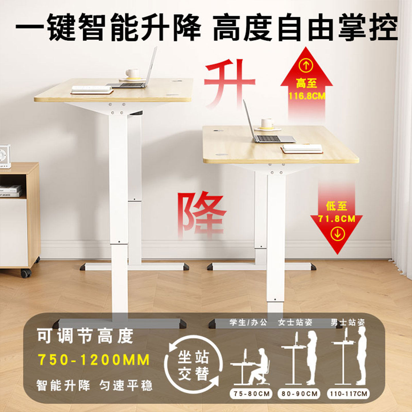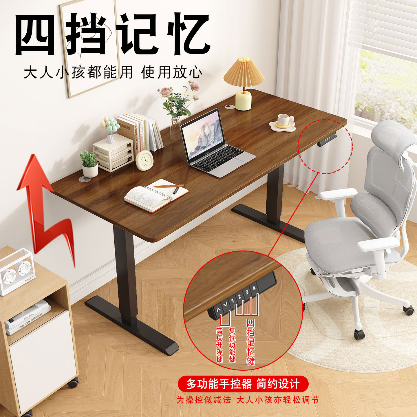 推荐理由:实木电动升降桌电脑桌家用卧室学习书桌办公桌工作台游戏电竞桌子