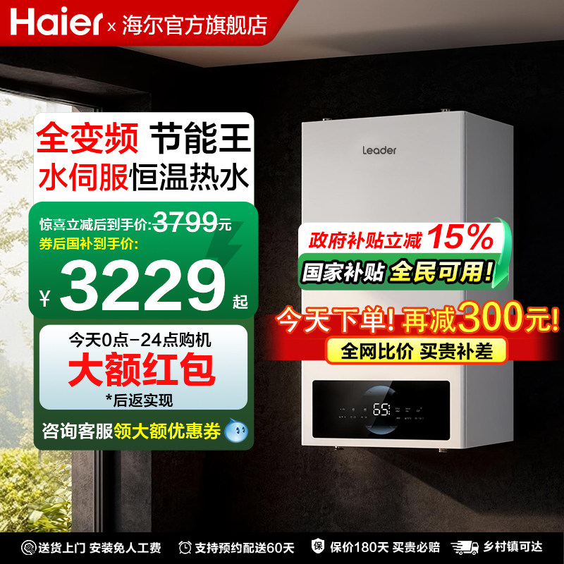 国家补贴海尔燃气壁挂炉家用天然气节能恒温采暖锅炉热水两用LC3
