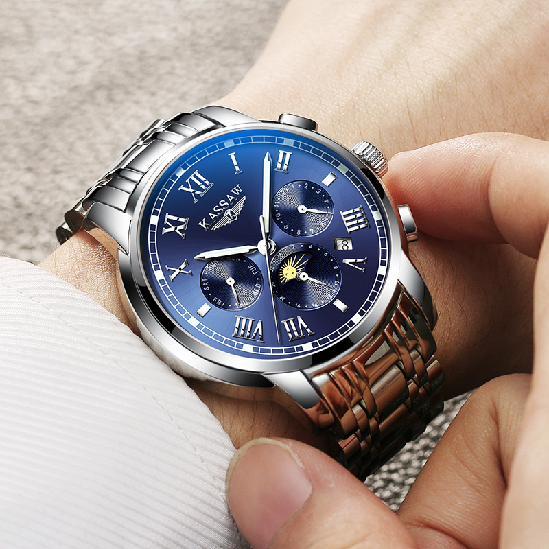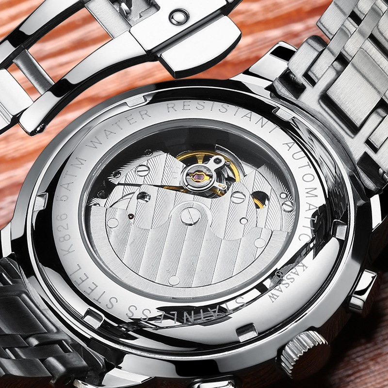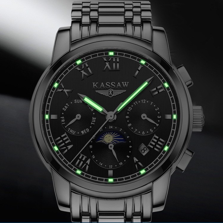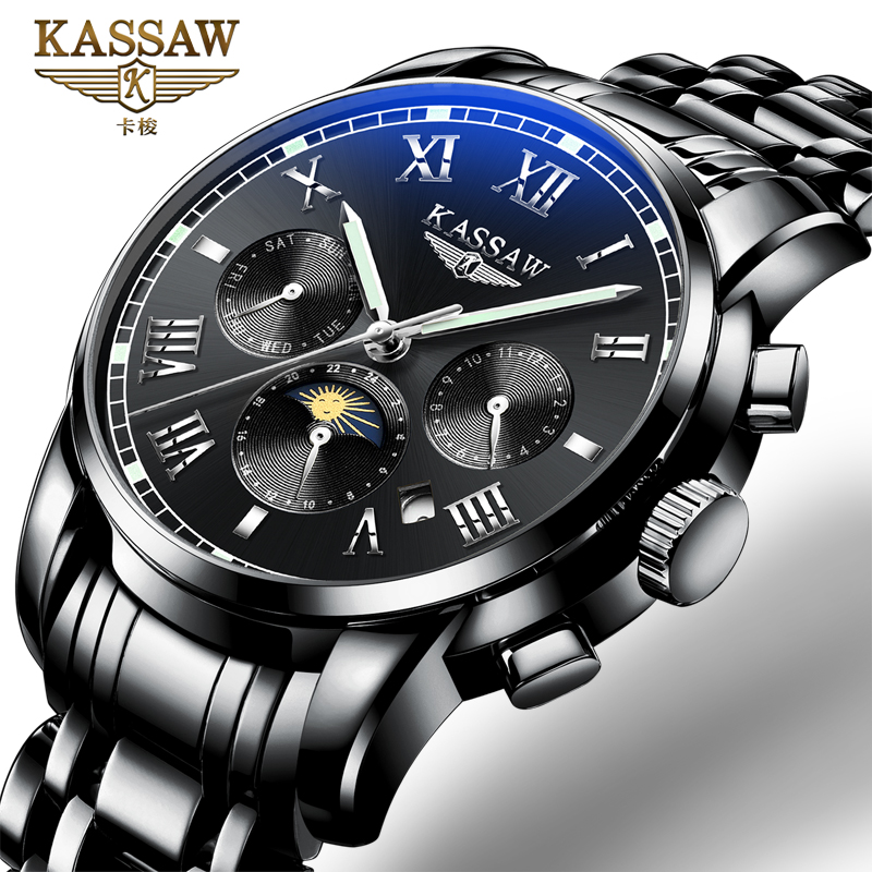 推荐理由:瑞士KASSAW德国军迷全自动机械表男手表夜光防水镂空精钢多功能表
