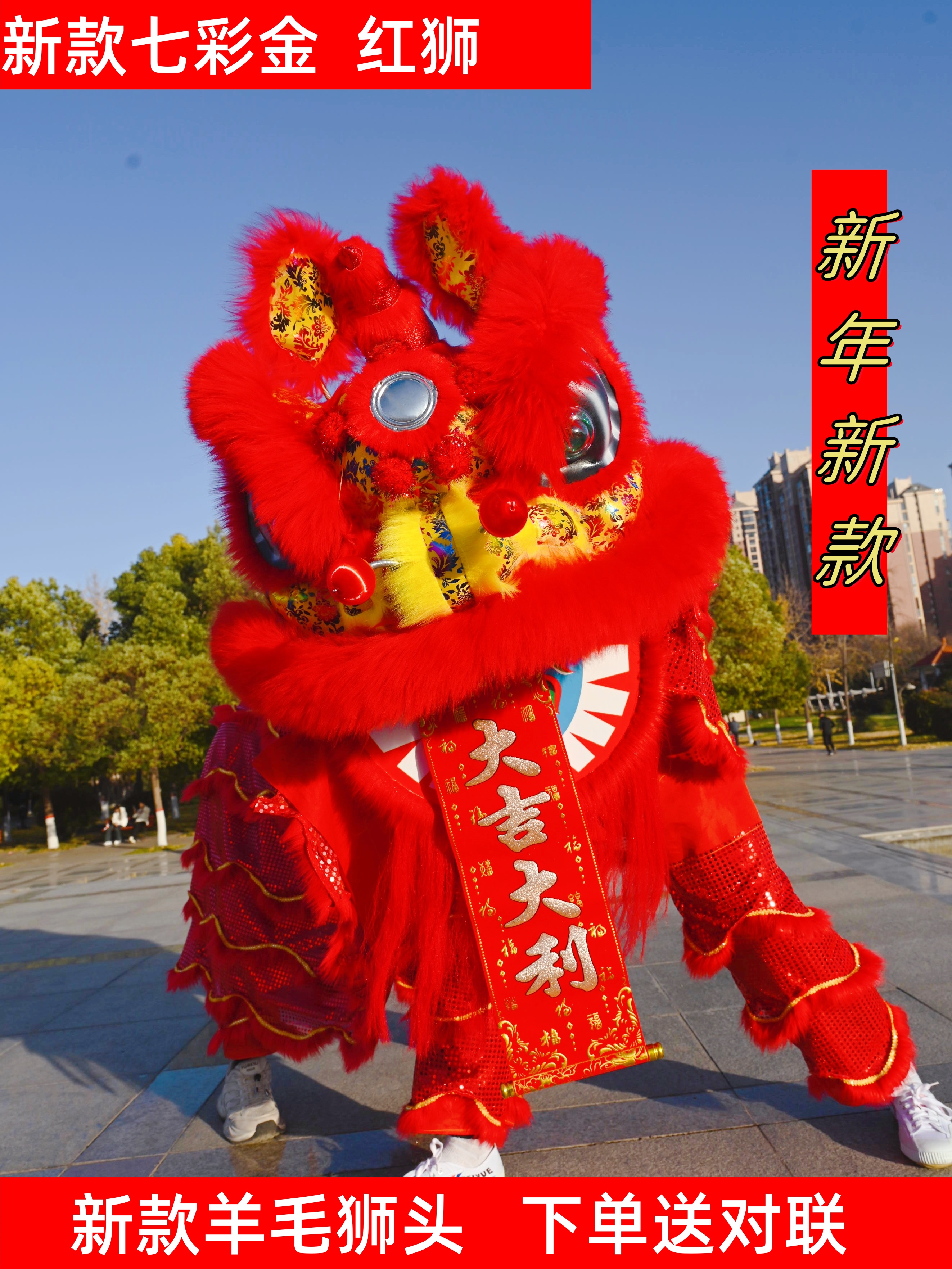 推荐理由:新款成人双人舞龙舞狮道具羊毛南狮醒狮舞狮子服装狮子头表演整套