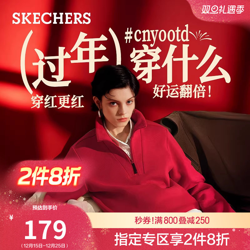 斯凯奇新年战袍红色立领卫衣女秋冬上衣半拉链长袖外套加厚运动衫