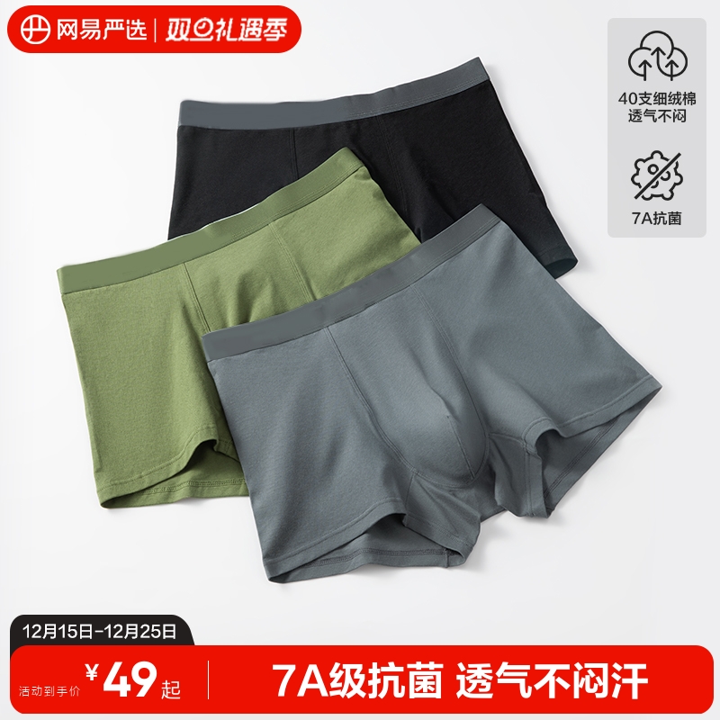 网易严选男士内裤纯棉男生2025新款四角裤男款短裤透气抗菌平角裤